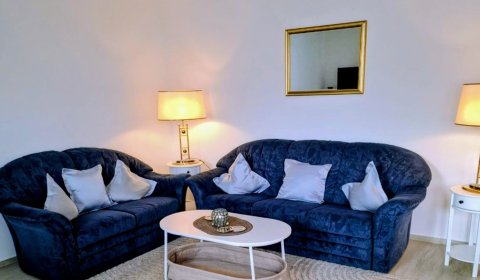 Wohnbereich mit bequemen Sofa und passenden Sesseln, Schlafzimmer mit Doppelbett TV und Kleiderschrank, Separate Küche mit Backofen und Cerankochfeld mit 4 Platten, Kühlschrank mit Gefrierfach und Geschirrspüler, Duschbad/ WC, 2 große, getrennte sonnige Westloggien, PKW Stellplatz in der Tiefgarage, Wlan vorhanden ( ohne Gewähr) |