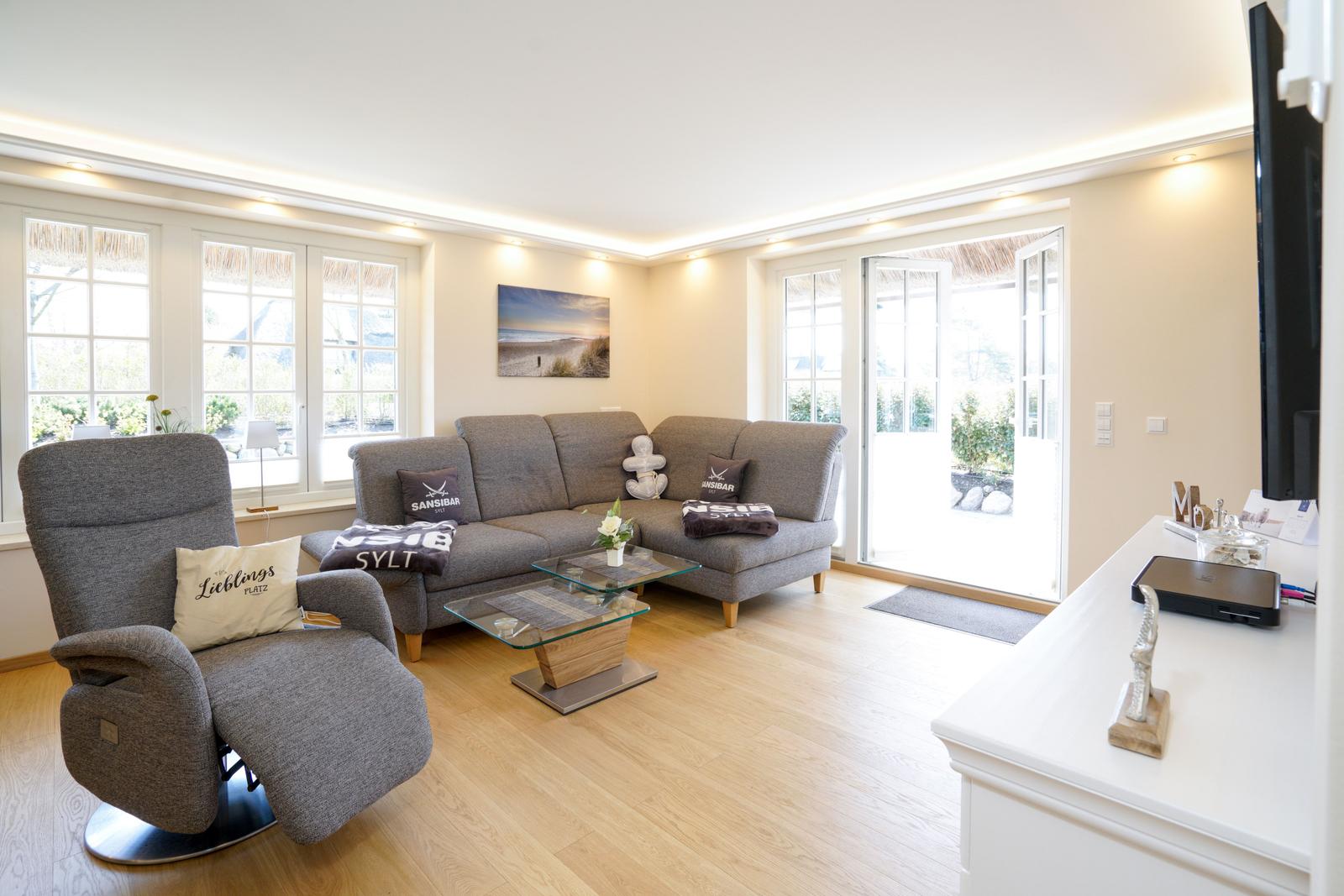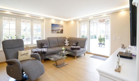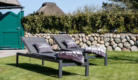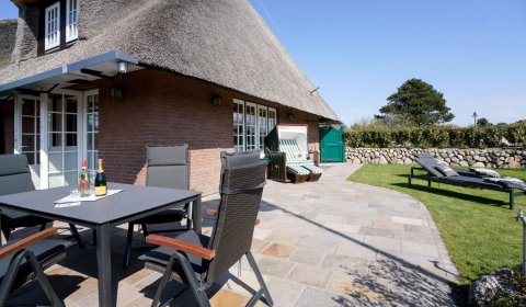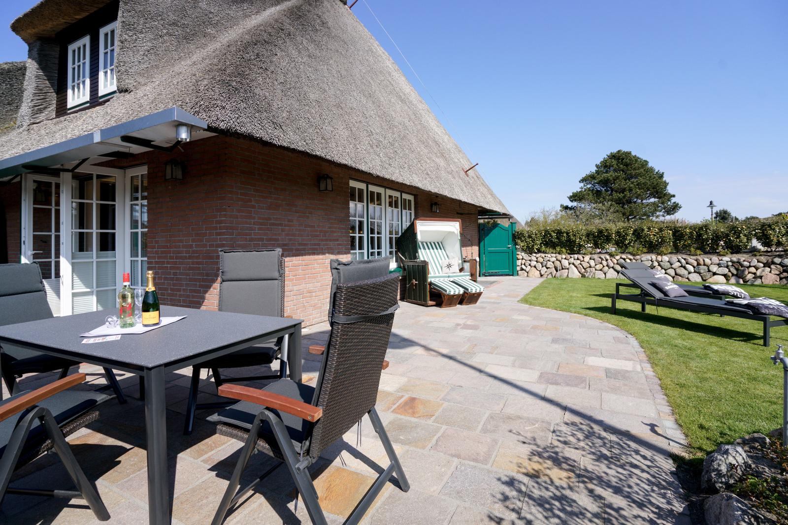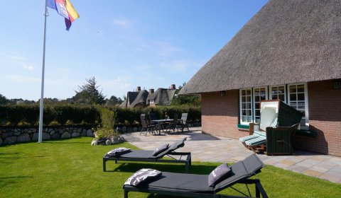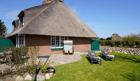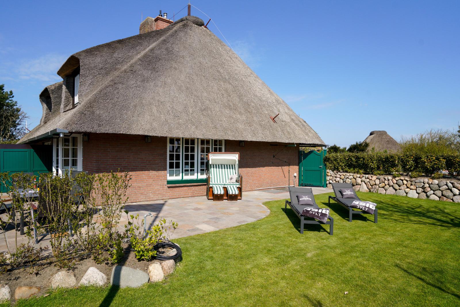 Die hochwertig neu renovierte Doppelhaushälfte unter Reet befindet sich im ruhigen Teil des Hans-Hansen-Wai nur ca. 300m vom Watt entfernt. Den Ortskern des Dorfes und den Weststrand können sie gut zu Fuß mit einem kleinen Spaziergang oder mit dem Fahrrad erreichen. Bäcker und ein kleiner Dorfladen befinden sich ebenfalls im Dorfkern. Der mit einem Friesenwall eingefasste neu angelegte Garten mit Strandkorb und Lounge Möbeln lädt zum Verweilen ein. Hier findet man alles zum Entspannen: eine große nach Osten und Süden ausgerichtete Terrasse mit Strandkorb, Liegestühlen und Sitzgruppe.