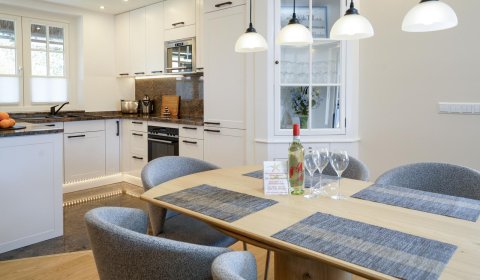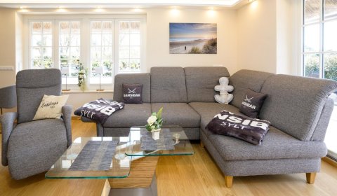 Das im modernen Landhausstil eingerichtete Haus bietet seinen Gästen höchsten luxuriösen Komfort mit Sauna, Gas Kamin, Fußbodenheizung, Buss-System, voll ausgestatteter offener Küche und Lichtkonzept. Im ganzen Haus wurden hochwertige Tischlereinbauten vorgenommen, die mit ihrem modernen Landhausstil den Charme des Hauses unterstreichen. Es bietet mit seinen 3 Schlafzimmern, dem geschmackvollen Wohnzimmer, 2 Badezimmern und Gäste-WC ausreichend Platz für bis zu 6 Personen.