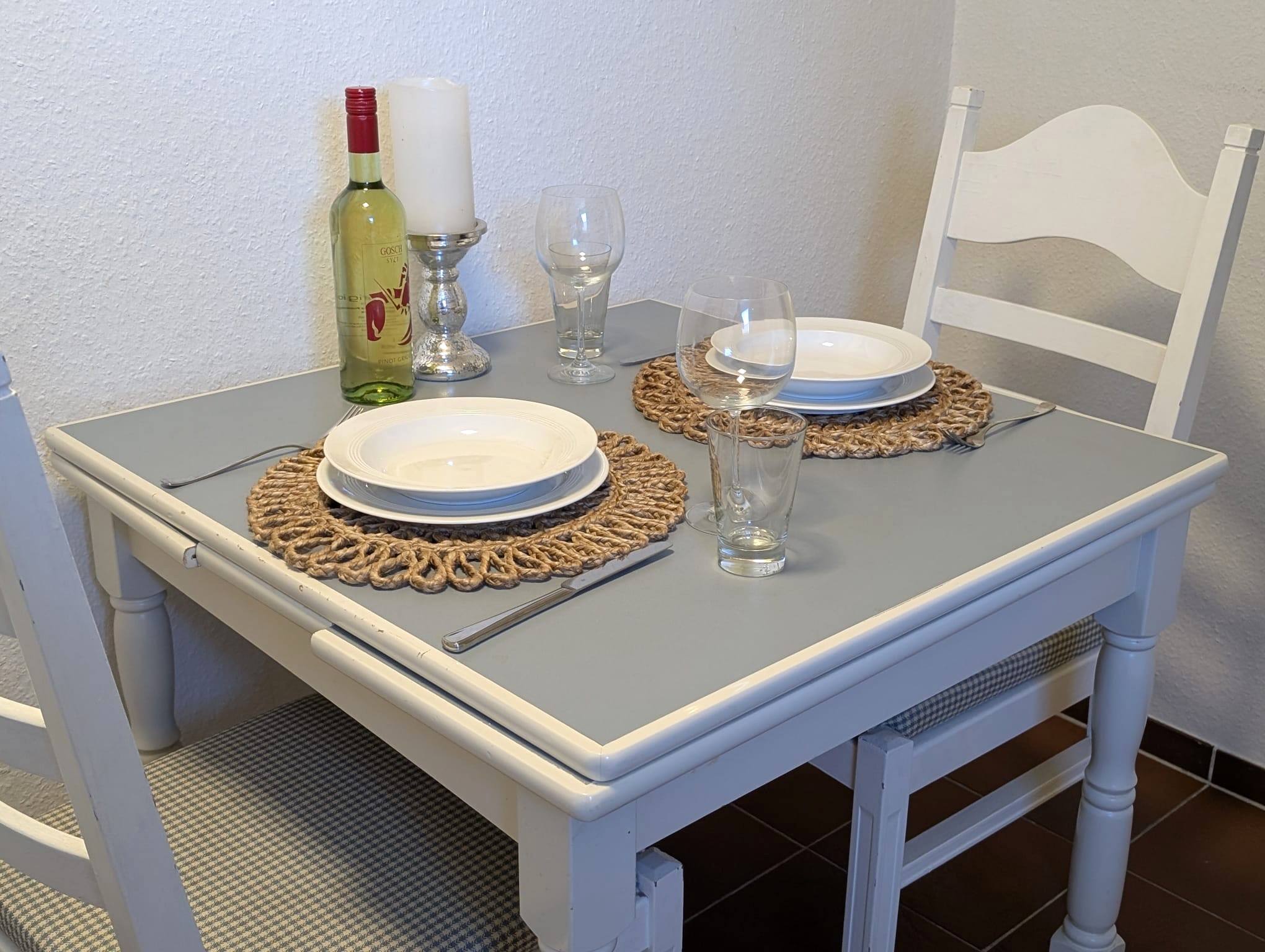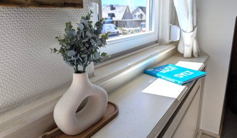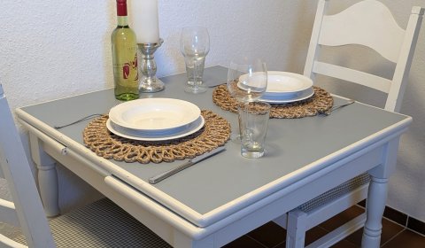 Urgemütliche Obergeschoss-Ferienwohnung mit viel Platz und hochwertiger Einrichtung für 2 Personen. Die Wohnung besitzt einen liebevoll gestalteten Wohn-/Schlafraum, eine komplett ausgestattete Küche mit separatem Esstisch und ein modernes Badezimmer mit Dusche.