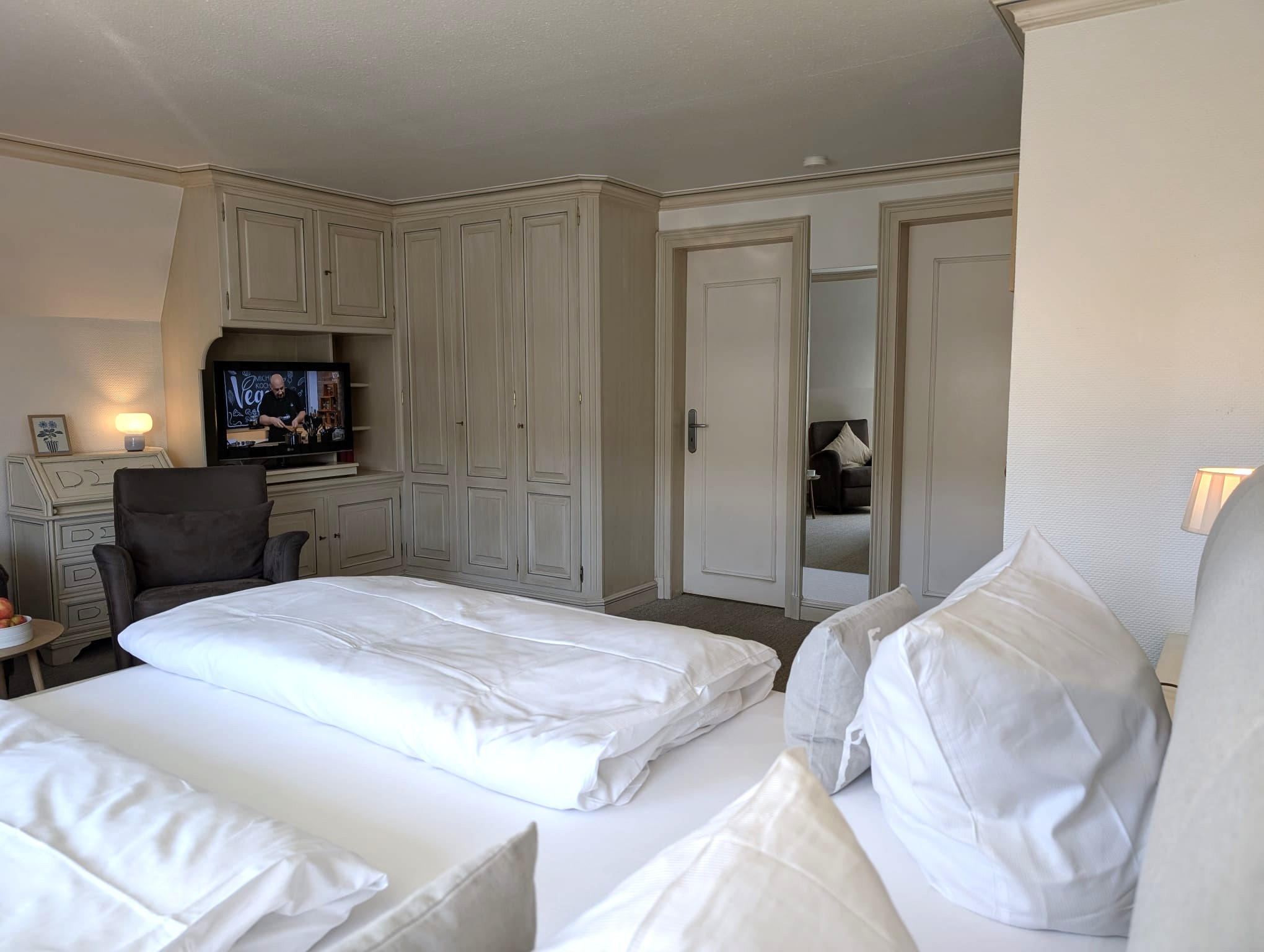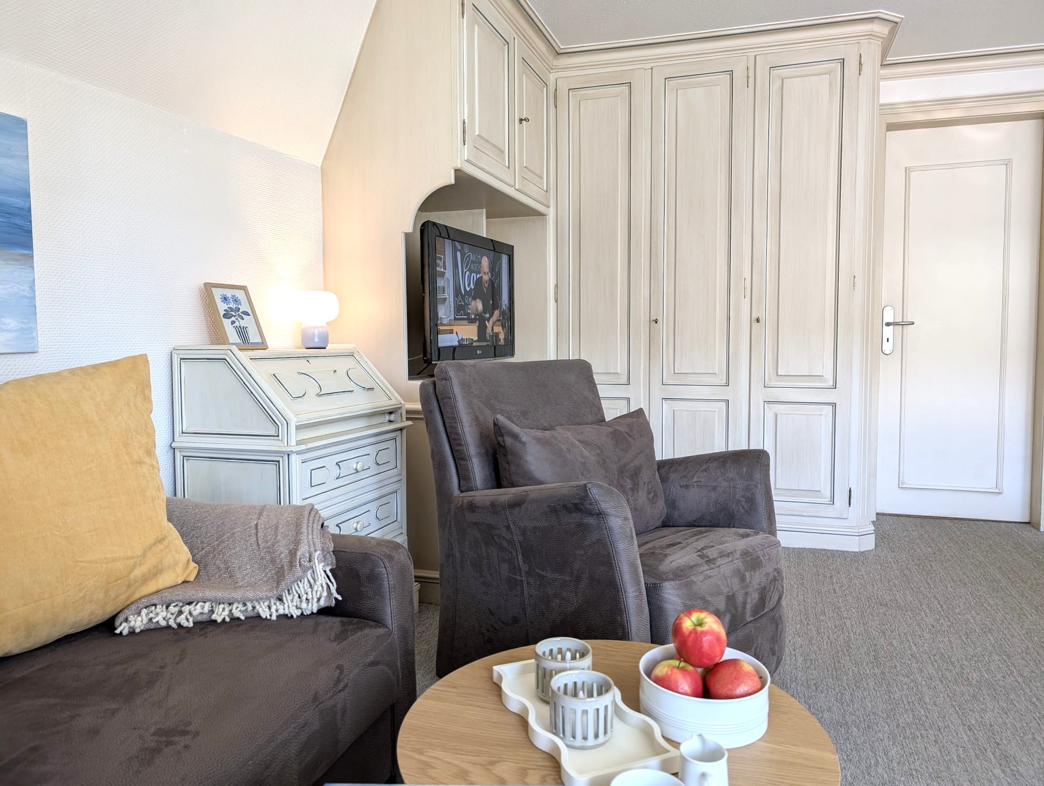 Zur Ausstattung gehört auch ein Flachbildfernseher, Radio, Fön, Bügeleisen und selbstverständlich kostenfreies WLAN.