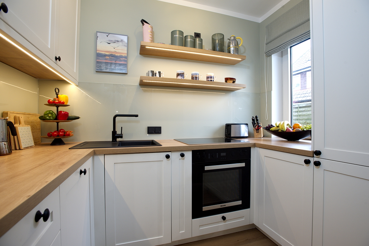 Im Erdgeschoss erwartet Sie ein einladender Wohnbereich mit einem großen Ecksofa, das zum Entspannen einlädt, sowie einem Esstisch, an dem gesellige Mahlzeiten genossen werden können. Die separate, voll ausgestattete Küche verfügt über moderne Annehmlichkeiten wie einen Geschirrspüler, einen Backofen und ein 4-Platten-Cerankochfeld, welches das Kochen zum Vergnügen machen. Das Badezimmer im Erdgeschoss ist mit einer Badewanne und einem WC ausgestattet.