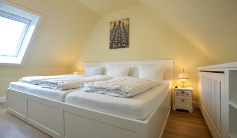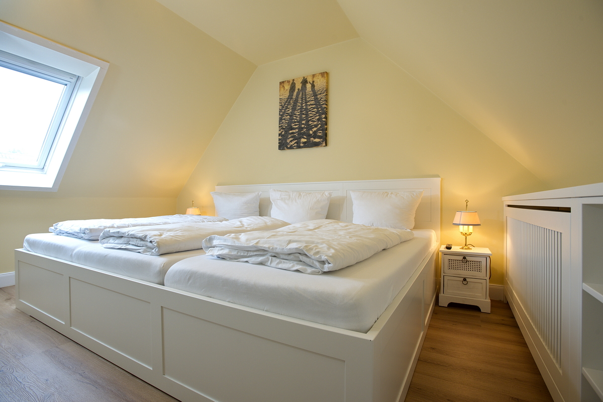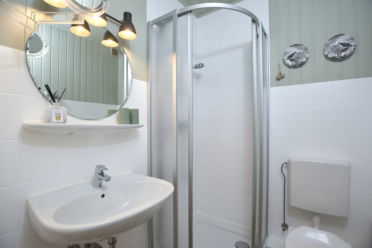 Das Obergeschoss bietet zwei weitere Schlafzimmer, die jeweils mit einem Doppelbett ( 180 x 200)  und einem Einbaukleiderschrank ausgestattet sind. Hier finden Sie auch ein weiteres Badezimmer mit Dusche und WC, das den Komfort für alle Gäste erhöht.