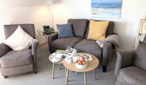 Sylter Besserburg App. 3P ★★★Wohnzimmer mit Doppel- u.1 Einzelbett. großer Terrasse zum Osten, Wlan verfügbar |