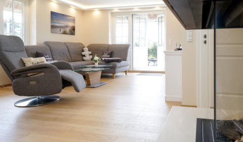 Das im modernen Landhausstil eingerichtete Haus bietet seinen Gästen höchsten luxuriösen Komfort mit Sauna, Gas Kamin, Fußbodenheizung, Buss-System, voll ausgestatteter offener Küche und Lichtkonzept. Im ganzen Haus wurden hochwertige Tischlereinbauten vorgenommen, die mit ihrem modernen Landhausstil den Charme des Hauses unterstreichen. Es bietet mit seinen 3 Schlafzimmern, dem geschmackvollen Wohnzimmer, 2 Badezimmern und Gäste-WC ausreichend Platz für bis zu 6 Personen.