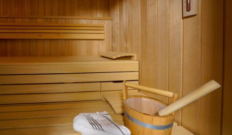 Im Untergeschoß gibt es eine weitere Möglichkeit für 2 Personen in einem Doppel-Schlafzimmer es sich gemütlich zu machen. Dort befindet sich auch der Spa-Bereich mit einer Sauna, einer zusätzliche Regen-Dusche und noch einem WC.
