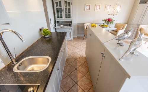 Diese liebevoll eingerichtete Wohnung ist das ideale Refugium für bis zu drei Personen. Bequeme, mit englischem Leinen bezogenen Polstermöbel, ein Jugendstilofen von Mylin, ein grüner Teppich mit stilvollen Blumenmotiven aus der Hof-Galerie im Rathaus Westerland und eine Küchenzeile mit Wandbildfliesen der Firma Mylin gehören zu dieser schönen Einrichtung. Das Schlafzimmer mit TV, ausgestattet mit französischen Polsterbetten und goldenen Lampen, sowie das Marmorbad mit Waschtisch des Designers Philippe Starcks gehören genauso zu dieser Wohnung wie eine Schlafcouch für ein Kind oder einen vorübergehend bleibenden Gast, ein Bose-Musiksystem und WLAN. Eine Sonnenterrasse mit Gartenmöbeln von Garpa lädt auf dem naturnahen Heidegrundstück mit direktem Blick auf das Wattenmeer zum Entspannen ein.