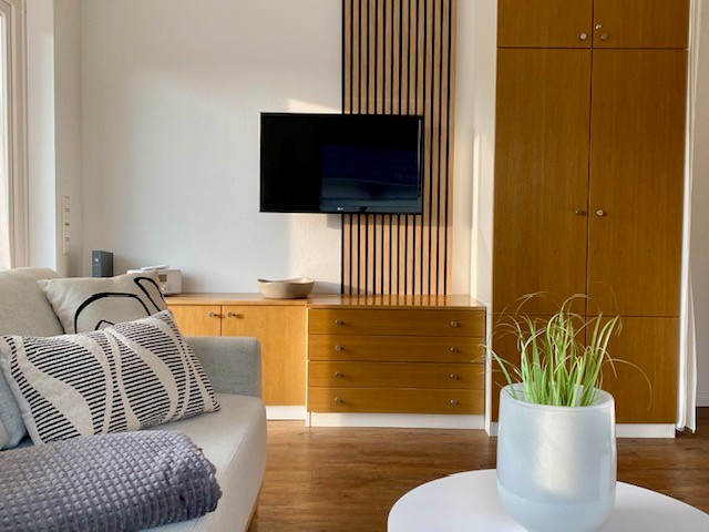 Die 1-Zimmer-Wohnung im Erdgeschoss verfügt über ein Wohnzimmer mit neuem Sofa sowie einem Essplatz. Der abgeteilte Schlafbereich ist mit einem Doppelbett (160 x 190) ausgestattet. Die hochwertig und vollausgestattete Küche bietet ein 4-Platten-Cerankochfeld, einen Backofen und einen Geschirrspüler. Das Duschbad mit WC sorgt für zusätzlichen Komfort. Zudem stehen Ihnen eine Waschmaschine und ein Trockner zur Verfügung. Genießen Sie die frische Luft im Garten auf der Terrasse, die mit Gartenmöbeln ausgestattet ist. Ideal für einen entspannten Aufenthalt!