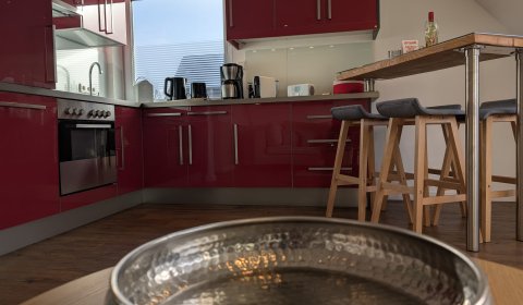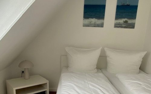Diese 3-Zimmer-Wohnung im Obergeschoss bietet Platz für bis zu 4 Personen. Der Wohnbereich ist mit einem großen, gemütlichen Sofa und einem Esstresen für 4 Personen ausgestattet. Die offene, hochwertige Küche ist voll ausgestattet mit Cerankochfeld, Backofen und Geschirrspüler. Das erste Schlafzimmer verfügt über ein Doppelbett und einen TV. Das Duschbad/WC ist mit einer Waschmaschine und einem Trockner ausgestattet. Im Dachgeschoss befindet sich ein weiteres Schlafzimmer mit TV, Kleiderschrank, Schreibtisch und angrenzendem Duschbad/WC. Vor dem Haus lädt eine Terrasse zum Entspannen ein. Haustiere sind nicht gestattet.