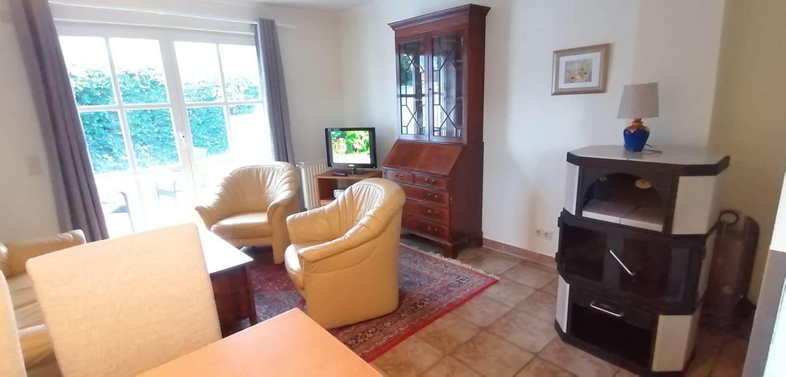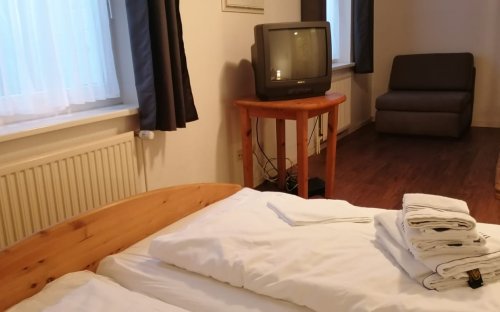 Freundliche 3-Zimmer-Wohnung mit einem Wohnzimmer und offener Küche. Separater Essplatz für 4 Personen. Im Untergeschoss befinden sich 2 Schlafzimmer, eines mit Doppelbett und eines mit Einzelbetten, Duschbad/WC. Belegung bis 5 Personen möglich. Ein neuer Flachbildschirm ist in der Wohnung vorhanden. Die Terrasse zum Westen lädt zum Entspannen ein. Ein Parkplatz befindet sich vor dem Haus. Haustiere sind erlaubt. Ein Schwimmbad kostenlos, Sauna steht für alle Gäste gegen Münzautomat zur Verfügung. Waschmaschine und Trockner .