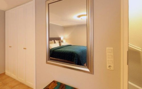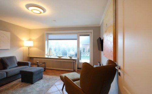 Neu und hochwertig eingerichtetes Appartement Strandresidenz im Erdgeschoss des Hauses, ist mit seinen ca 56 qm für maximal 3 Personen geeignet. Im Wohnzimmer befindet sich eine bequeme Schlafcouch, Flat TV, Stereoanlage und DVD Player. Die große Küche besticht mit einer Esstischgruppe für 4 Personen, einem 4er Cerankochfeld, Kaffeemaschine, Wasserkocher, einem Geschirrspüler sowie einem Mikrowellenbackofen. Vom Flur aus gelangen sie ins Untergeschoss, wo sich das Schlafzimmer mit Doppelbett ( 1,80m x 2,00m ), Einbauschrank und Flat TV befindet. Südterrasse mit Strandkorb, Tisch und Stühlen.
