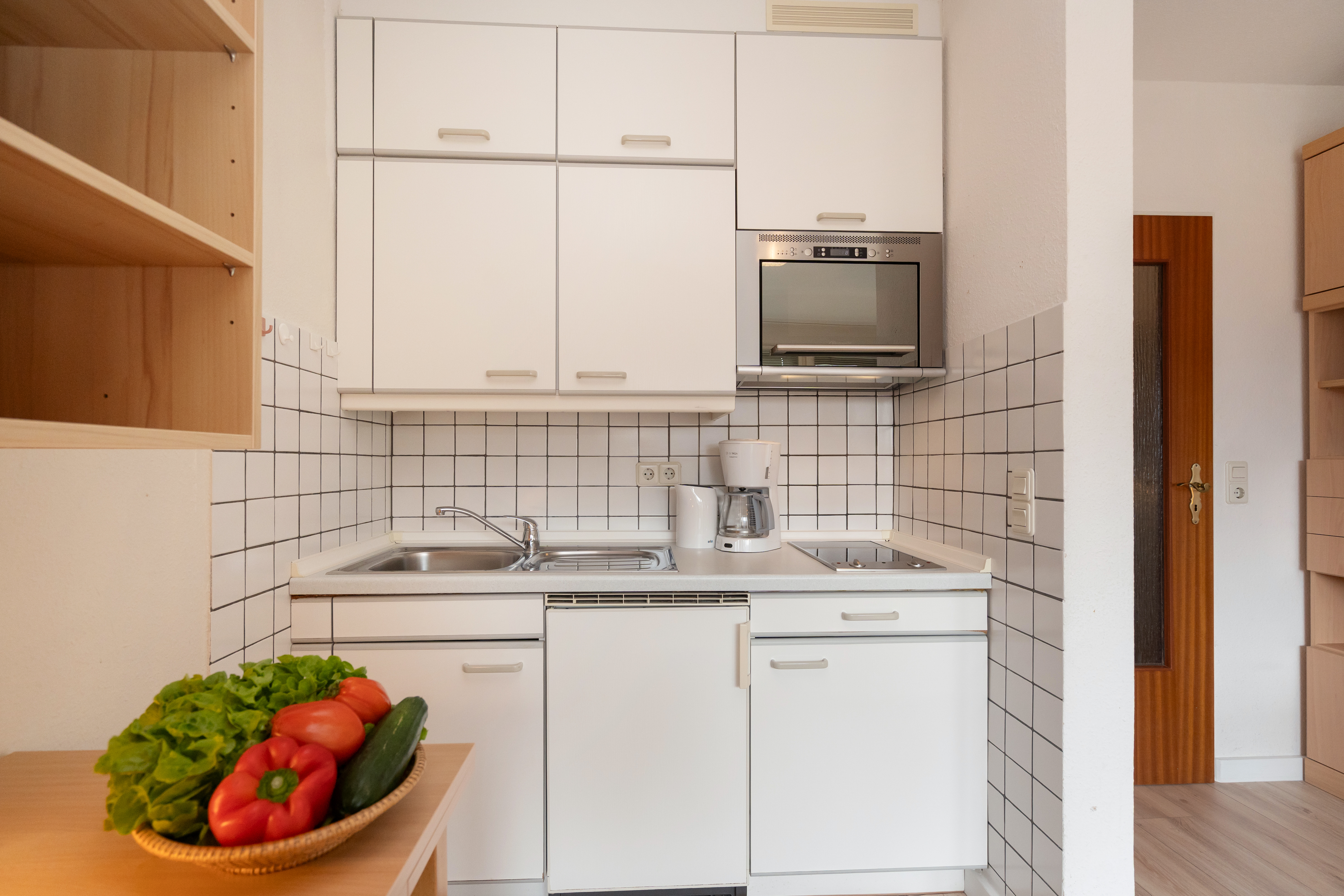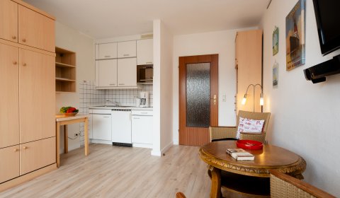 Geflegte 1 Zimmer Wohnung zentral gelegen im Haus Christianenhöhe. Der Eingangsbereich ist mit einem geräumigen Kleiderschrank inklusive Spiegel ausgestattet, dieser bietet ausreichend Stauraum für Kleidung, Schuhe und Utensilien. Der komfortable Wohnbereich verfügt über ein praktisches Schrankbett ( einzelnt klappbar), das sich bei Bedarf bequem ausklappen lässt und tagsüber zusätzlichen Platz schafft. Zwei Stühle und ein kleiner Tisch ermöglichen eine gemütliche Sitzecke zum Essen, Lesen oder Arbeiten. Die offene Küche ist mit einem 2 Platten Cerankochfeld und einer Mikrowelle ausgestattet – ideal für schnelle Mahlzeiten oder Kaffee am Morgen. Das Badezimmer verfügt über eine Dusche mit hohem Einstieg und einer Handtuchheizung, die für eine angenehme Wohlfühltemperatur im Raum sorgt. Der Balkon ist südlich ausgerichtet und bietet einen Blick auf den Innenstadtbereich. Kein PKW Stellplatz. Haustiere sind nicht gestattet.