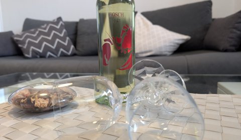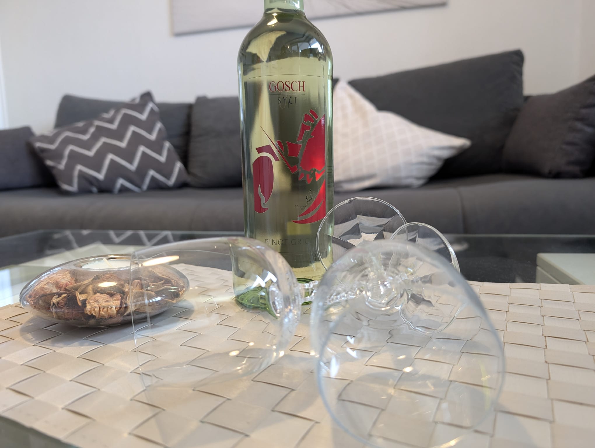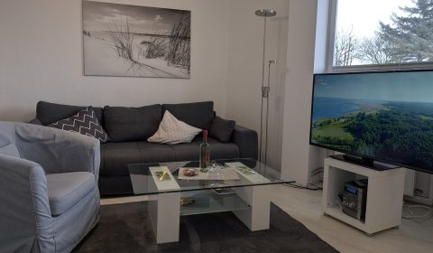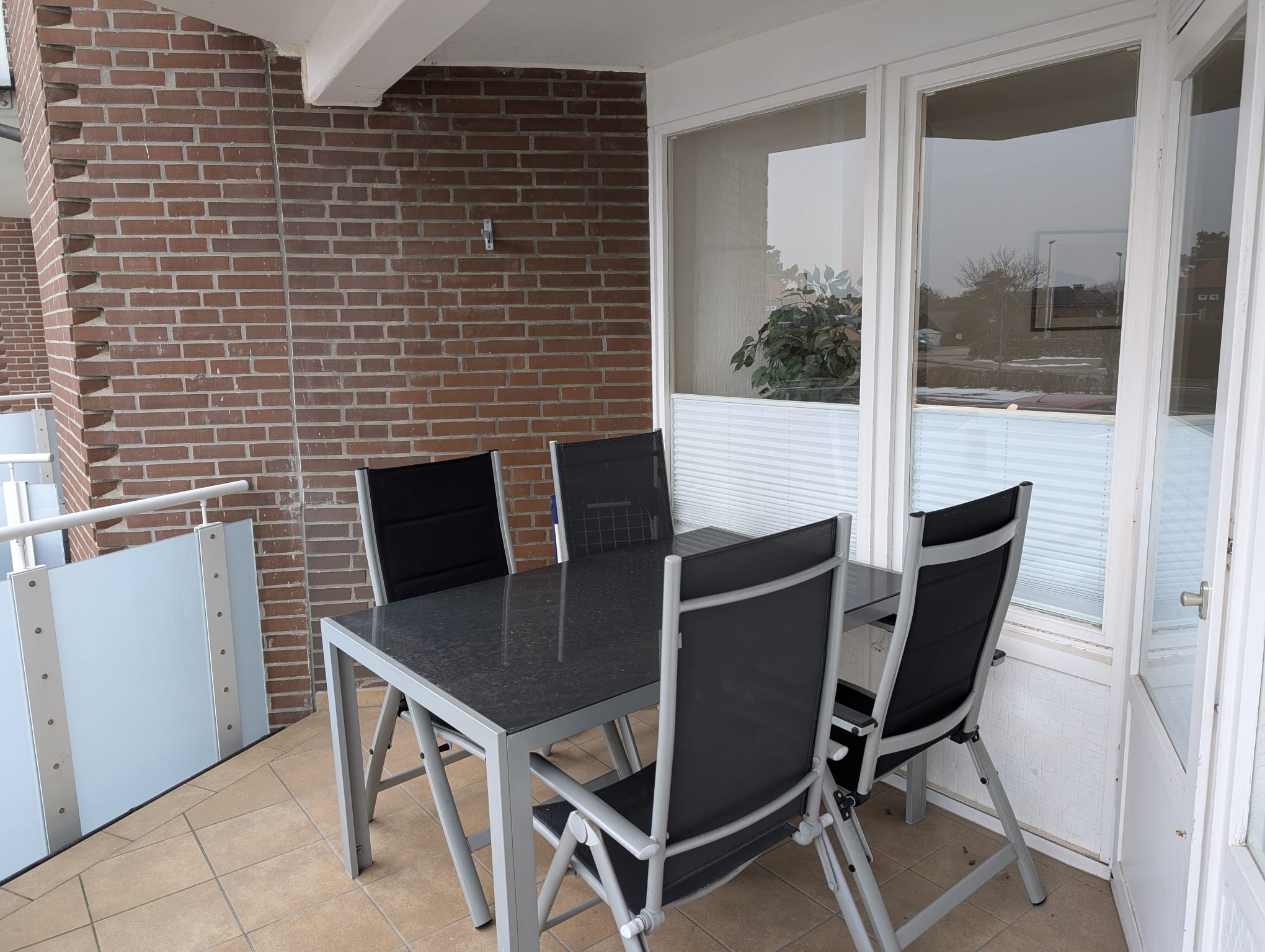 Die separate Küche ist vollständig ausgestattet mit Geschirrspüler, einem 4-Platten-Cerankochfeld und einer Mikrowelle mit Backofenfunktion. Das hochwertige, moderne Duschbad/WC sorgt für Komfort und Wohlbefinden. Vom Balkon Richtung Osten genießen Sie ganztägig frische Meerluft; dort laden Tisch und Stühle zum Frühstück im Freien ein.