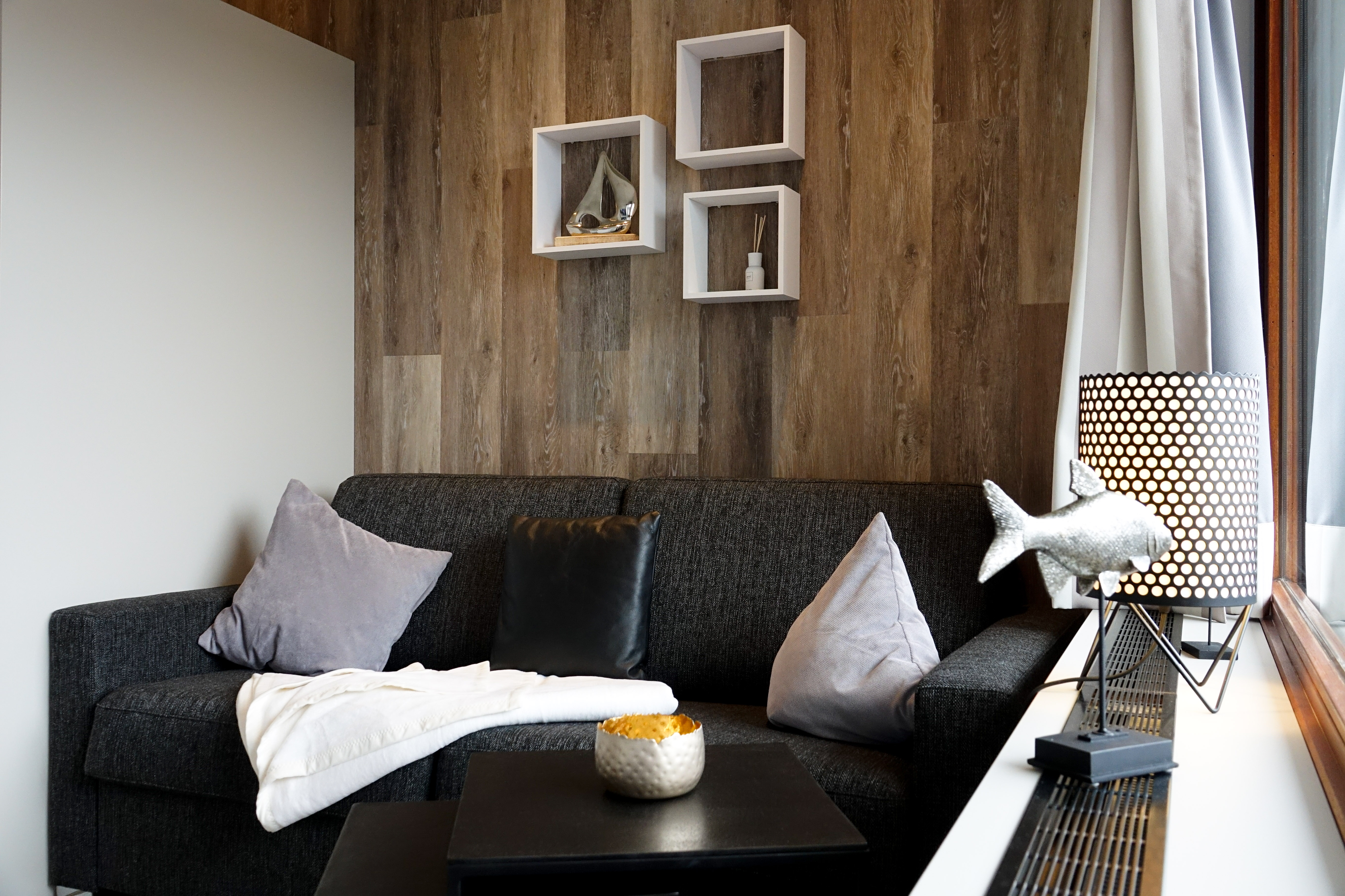 Die 1 Zimmer Wohnung „Nordlicht“ ist mit viel Liebe zum Detail eingerichtet und mit hochwertigen und moderen Möbeln ausgestattet. Durch geschickte raumtrennende Elemente entstehen elegante Bereiche für Wohnen und Schlafen, die zugleich eine gemütliche und ruhige Atmosphäre ausstrahlen.