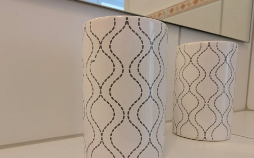 Badezimmer mit Dusche, Fön und Kosmetikspiegel